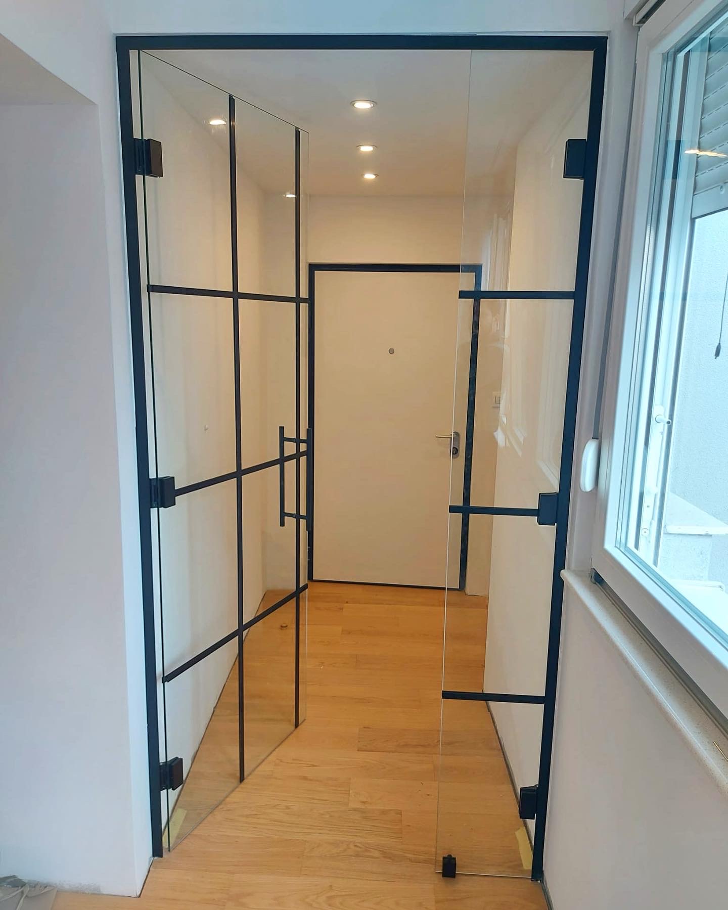 Staklena vrata elegantnog dizajna zasigurno će privući pažnju u svakom domu. Jednostavnost i lakoća staklenih vrata osiguravaju prozirnost i omogućuju mnogo svijetla, osim izgledom pridonose i na uštedi prostora. Staklo se uklapa u svaki prostor, dižući ga na jedan viši, profinjeniji nivo, dajući prostoru suvremeni izgled. Sva vrata se izrađuju po mjeri i prilagođuju Vašim zahtjevima.